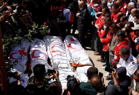 CAIRO (Reuters) - The Israeli military said on Monday that an initial investigation into the killing of 15 emergency workers in south Gaza last month showed that the incident occurred "due to a sense of threat".