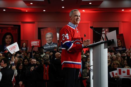 TROIS-RIVIERES, Quebec (Reuters) - Canadian Prime Minister Mark Carney took his election campaign to Quebec on Tuesday, saying only he could protect the predominantly French-speaking province from U.S. President Donald Trump.