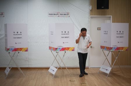 A man walks from a booth at polling station during the presidential election in Seoul, South Korea, June 3, 2025. REUTERS/Kim Hong-Ji