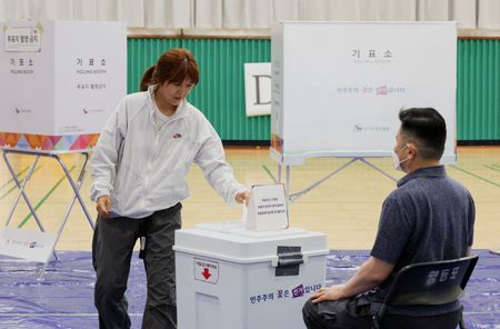A person casts their vote during the presidential election in Seoul, South Korea, June 3, 2025. REUTERS/Go Nakamura