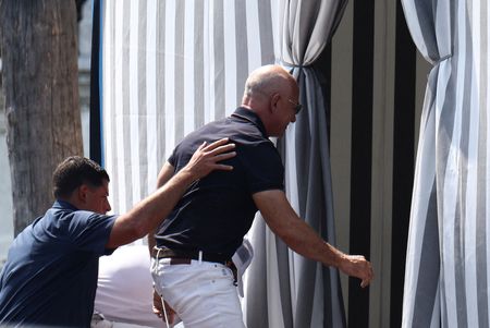 Jeff Bezos arrives at Aman Venice hotel, ahead of his and Lauren Sanchez expected wedding, in Venice, Italy, June 25, 2025. REUTERS/Guglielmo Mangiapane
