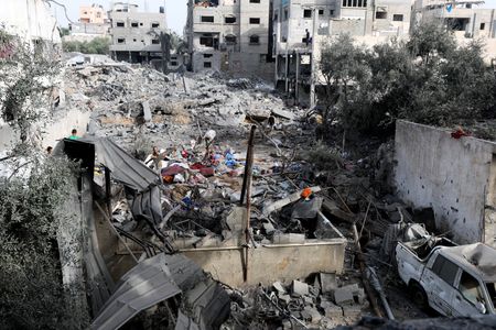 FILE PHOTO: A Palestinian man inspects the site of an Israeli strike on a house that took place on Monday, in Zawayda in the central Gaza Strip, July 1, 2025.REUTERS/Ramadan Abed/File Photo