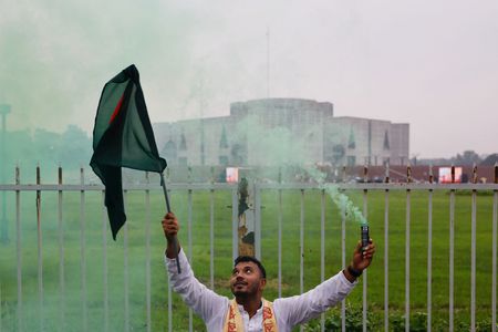 DHAKA (Reuters) -Thousands of exultant Bangladeshis gathered in Dhaka on Tuesday to mark the first anniversary of mass protests that toppled Sheikh Hasina, as the interim government unveiled a roadmap for democratic reform with a national election next year.