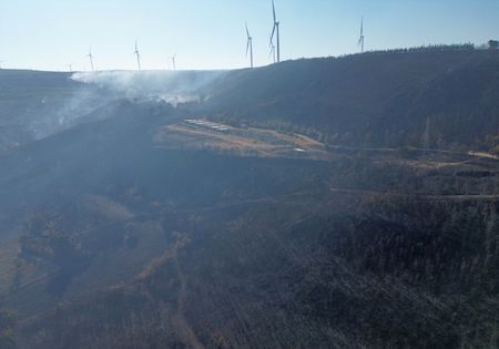 A drone view shows the aftermath of a wildfire near Erenkoy, Canakkale, Turkey, August 12, 2025. REUTERS/Efekan Akyuz