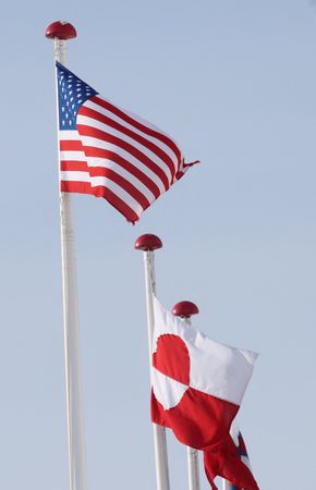 The Greenlandic and U.S. flags fly in front of the Danish armed forces' Arctic Command in Nuuk, Greenland March 27, 2025. REUTERS/Leonhard Foeger