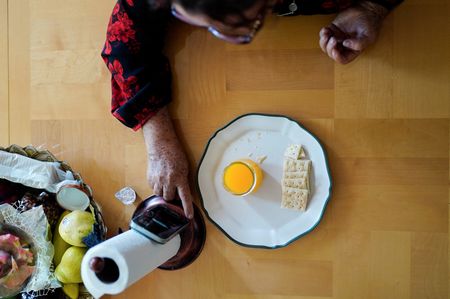 CHICAGO (Reuters) -Sitting alone at her dining room table this past Sunday, Doris Aguirre took a bite of a soda cracker and a sip of the orange juice she had prepared to represent the body and blood of Jesus Christ. Eyes closed, she then made the sign of the cross.