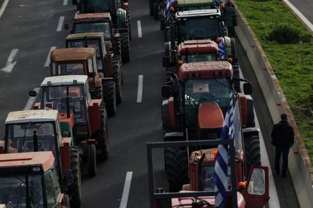 Hundreds of farmers took to the streets, blocking roads with their tractors in several areas to protest against the conservative government over an estimated 600-million-euro ($696 million) shortfall in EU aid and other payments.