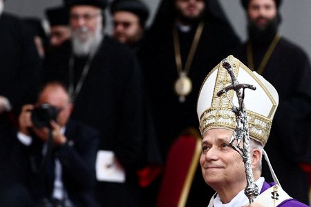 Pope Leo XIV walks to preside over the Holy Mass at the Waterfront, during his first apostolic journey, in Beirut, Lebanon. REUTERS/Yara Nardi
