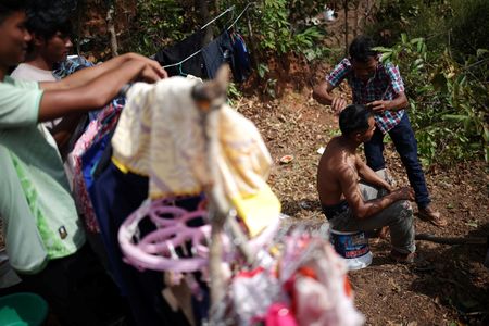 A man gets a haircut at Chong Kal refugee camp after evacuation amid deadly clashes between Thailand and Cambodia along a disputed border area, in Chong Kal, Oddar Meanchey Province, Cambodia, December 11, 2025. REUTERS/Kim Hong-Ji