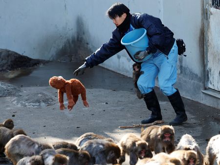 ICHIKAWA, Japan, Feb 20 (Reuters) - At a zoo outside Tokyo, the monkey enclosure has become a must-see attraction thanks to an inseparable pair: Punch, a baby Japanese macaque, and his stuffed orangutan companion.