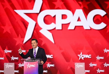 Former U.S. Representative Matt Gaetz stood out as a rare voice of caution, saying the United States was too beholden to Israel’s interests, repeating a criticism he has made in the past.