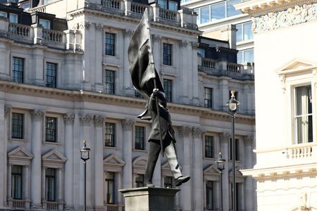 Banksy installs statue of flag-wielding man in central London
