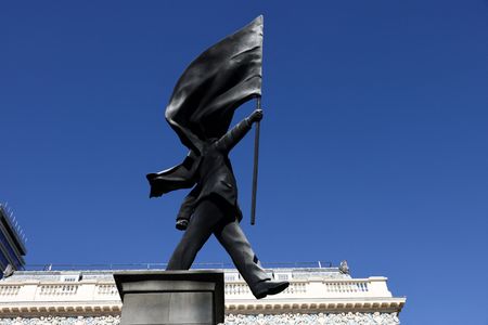 HomeArtBanksy installs statue of flag-wielding man in central London