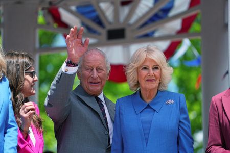 Posing for photographs outside the White House's South Portico on Thursday morning, Trump, who sometimes revels in his political opponents denouncing him as a would-be king, pointed to the monarch and said: "He's the greatest king, in my book." The two men, joined by Camilla and U.S. first lady Melania Trump, went inside, came back out six minutes later, and the royals got in their car to tour several sites in Virginia.