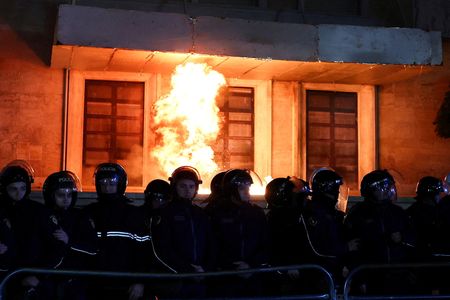 TIRANA, Dec 22 (Reuters) - ​Protesters in Tirana hurled petrol bombs at the government building housing Prime Minister Edi Rama's office on Monday, demanding ⁠the government's resignation after prosecutors indicted the deputy prime minister for alleged corruption.