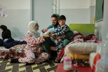 In the shelter, where multiple families share bathrooms, Houmani worries about cleanliness, breastfeeding and bathing her children. Within the first two weeks of his life, Ali has caught a cold and a rash has spread across his face. His family is anxious for a pediatrician to treat him, but so far, none have come to the shelter.