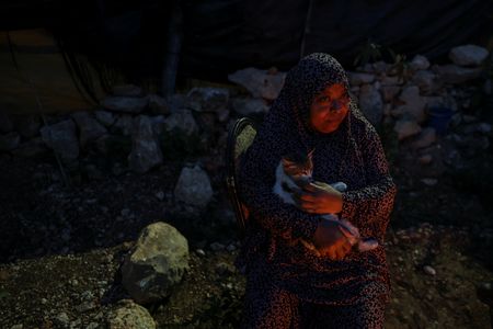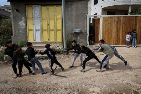 TULKARM, West Bank, April 2 (Reuters) - The sight and sound of Iranian rockets arcing overhead have become near-daily for the Palestinian Ghanem family, expelled by the Israeli military from a refugee camp and now living in a rickety shack with a thin metal roof offering little protection.