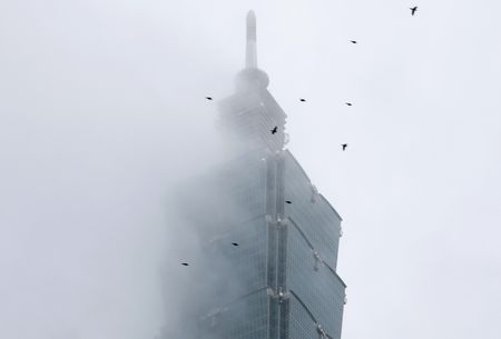 The top of Taipei 101 was obscured by cloud on Saturday morning, with intermittent rain showers.