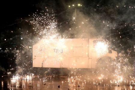 Demonstrators hurled petrol bombs and fireworks at the Prime Minister Edi Rama's office and police responded with tear gas and water cannon.