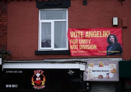 GORTON, England, Feb 23 (Reuters) - Support for Prime Minister Keir Starmer's Labour Party is evaporating in one of its Manchester strongholds, where the Green Party or right-wing Reform UK could rupture decades of political tradition in an election later this month.