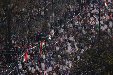 Both Orban's right-wing Fidesz and centre-right challenger Peter Magyar's Tisza used Hungary's March 15 national day for a show of force as the campaign enters a pivotal stage. Most surveys put Tisza ahead by a wide margin.