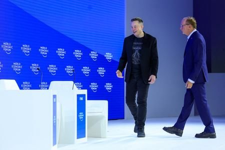 DAVOS, Switzerland, Jan 22 (Reuters) - Elon Musk marked his last-minute Davos debut on Thursday with a critique of U.S. solar tariffs and aggressive targets for Tesla, including humanoid robot sales next year, as well as flagging European approval for self-driving tech within weeks.