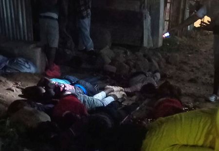 In a photo taken by a witness and verified by Reuters, nine of the same bodies are visible.