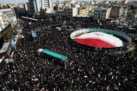 In Tehran, thousands appeared in the streets for a funeral for Larijani and other slain figures.
