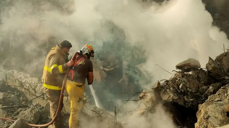 BEIRUT/NAZARETH, March 11 (Reuters) - Israeli strikes battered Beirut's southern suburbs late on Wednesday, lighting up the skyline with flashes of red and setting buildings on fire, after the Lebanese-armed group Hezbollah launched a volley of rockets into northern Israel.