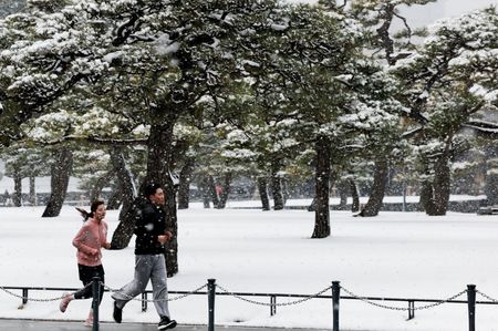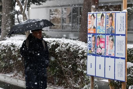 Residents trudged through snow to cast their ballots with record snowfall in some parts snarling traffic and requiring some polling stations to close early. It was only the third postwar election held in February, with elections typically called during milder months.
