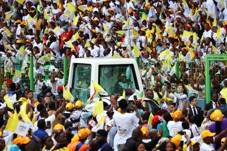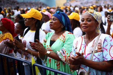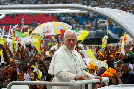 The first U.S. pope closed the nearly 18,000 km (11,185 miles) tour with a final Mass in a stadium in Equatorial Guinea, where tens of thousands began gathering in pouring rain before dawn for a last chance to see him.