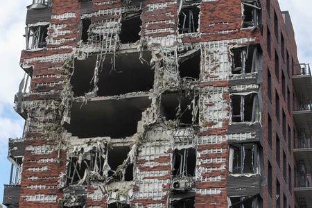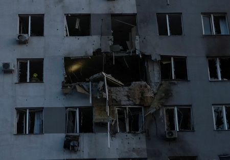 April 15 (Reuters) - Russia attacked Ukraine overnight and throughout the day on Wednesday with hundreds of drones and missiles, targeting port infrastructure in the south, killing two people and wounding at least seven, Ukrainian officials said.