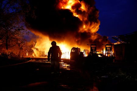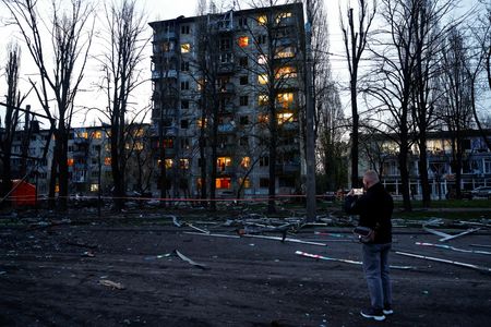 April 16 (Reuters) - Russian forces attacked the Ukrainian capital Kyiv and other cities early on Thursday, killing three people, including a 12-year-old child, injuring more than 20 and badly damaging buildings, officials said.