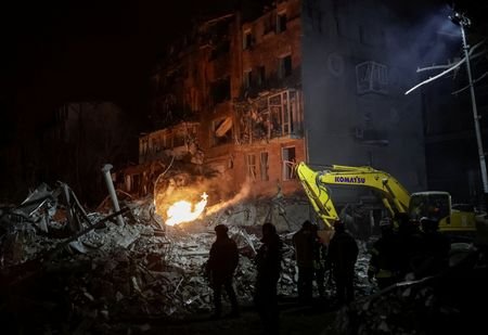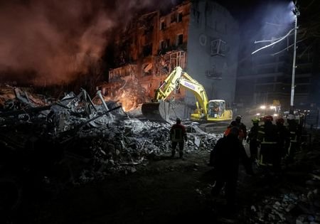 KYIV, Jan 2 (Reuters) - Russian missiles ​struck a multi-storey apartment building in Kharkiv in northeastern Ukraine on Friday, leaving the building in ruins and killing at least two people and injuring about 25 more, officials said.
