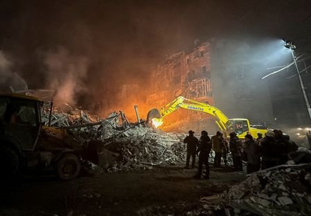 Photographs and videos posted online showed smoke rising from an area of destruction, with emergency crews ‍making their way through rubble and large chunks of building materials.