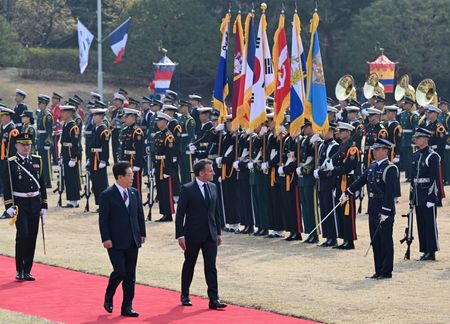 SEOUL, April 3 (Reuters) - South Korean President Lee Jae Myung and French President Emmanuel Macron are set to upgrade relations between the countries to a "global strategic partnership," Korea's Blue House said in a statement on Friday.