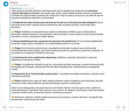 The Spanish government said Durov's message to all Spanish users of Telegram showed the urgent need to regulate social media and messaging apps to protect citizens from misleading information.