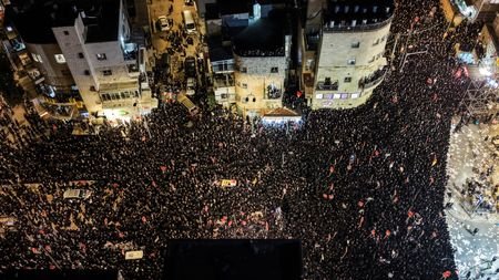 JERUSALEM, Jan 6 (Reuters) - A mass ultra-Orthodox Jewish rally against military conscription turned deadly in Jerusalem on Tuesday, when a teenage boy was crushed and killed after a man driving a bus hit the crowd.