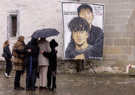 LUTRY, Switzerland, Jan 8 (Reuters) - Teammates of a 16-year-old soccer player Arthur Brodard were among the mourners on Thursday as Switzerland held funerals for some of the victims of the New Year bar fire in Crans-Montana that killed 40 people, most of them teenagers.