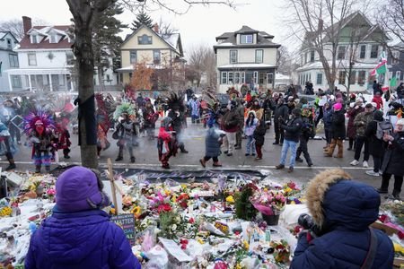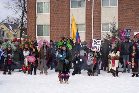 Led by a team of Indigenous Mexican dancers, demonstrators on Saturday marched through Minneapolis and along the residential street past the spot where Good was shot dead behind the wheel of her SUV.