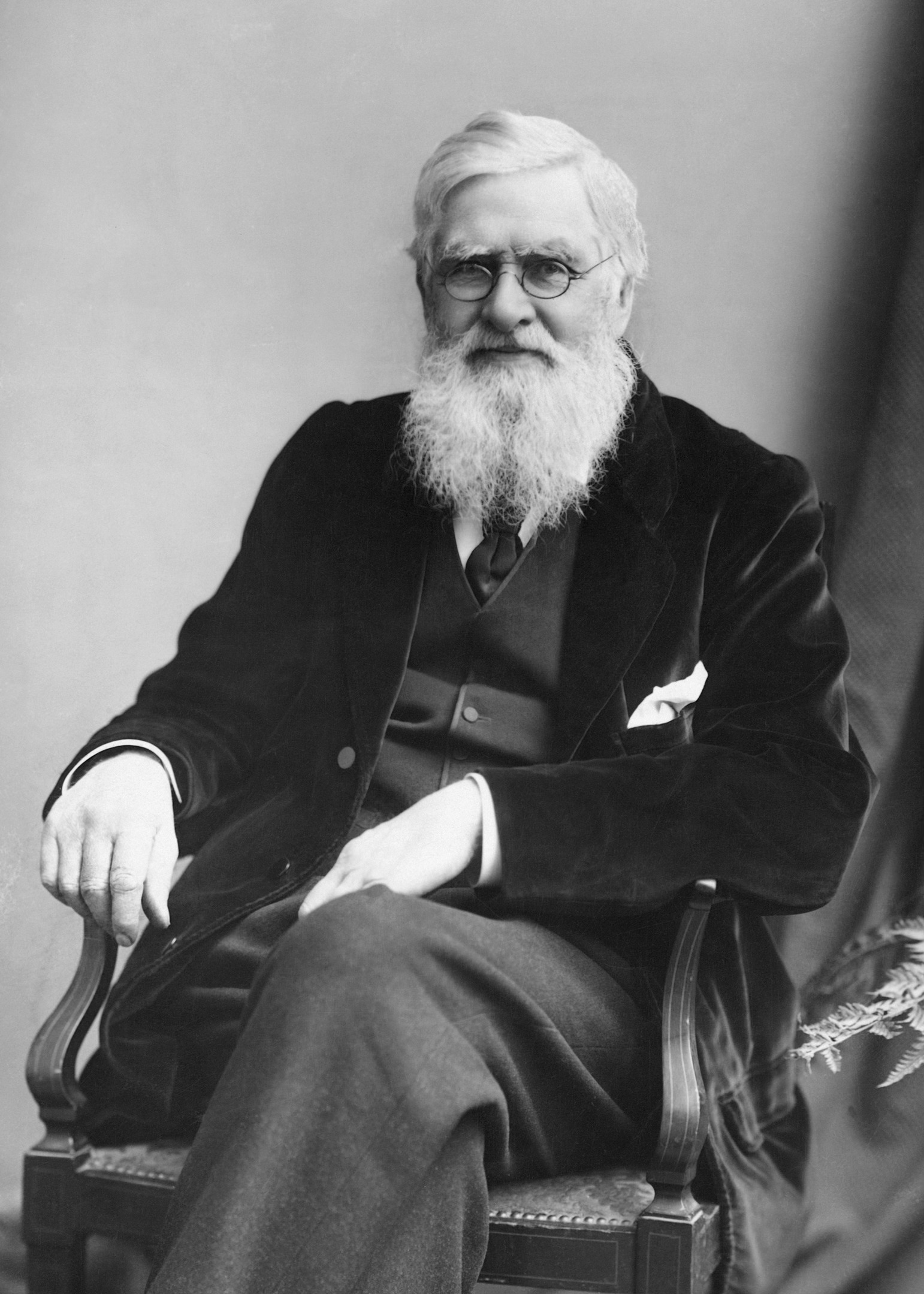 Alfred Russel Wallace sought to calm the enthusiasm for eugenics. 'Leave hereditary alone', he implored. (⇲ Public Domain) Photograph London Stereoscopic and Photographic Company, c.1895.