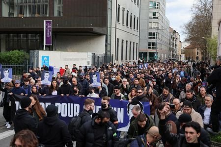 LYON, Feb 21 (Reuters) - Thousands of people marched on Saturday in the French city of Lyon following the killing there of far-right activist Quentin Deranque, who was beaten to death last week by alleged hard-left activists in an incident that shocked the nation.