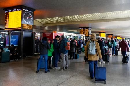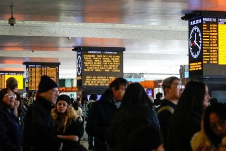 MILAN, Feb 14 (Reuters) - Trains operating through the heart of Italy suffered delays of more than an hour on Saturday following the latest suspected act of sabotage during the Olympic Games.