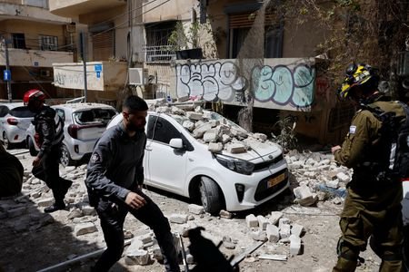 An Iranian strike also landed near Israel's secretive nuclear reactor about 13 km (8 miles) southeast of the city of Dimona.