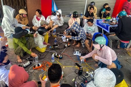 "All my investments are gone. I am so desperate at the moment," he said. Sa's two-story warehouse, used for storing shrimp feed, was briefly submerged due to seven-meter-high waves and strong winds, leading to an estimated loss of around 1 billion dong ($37,959.31).